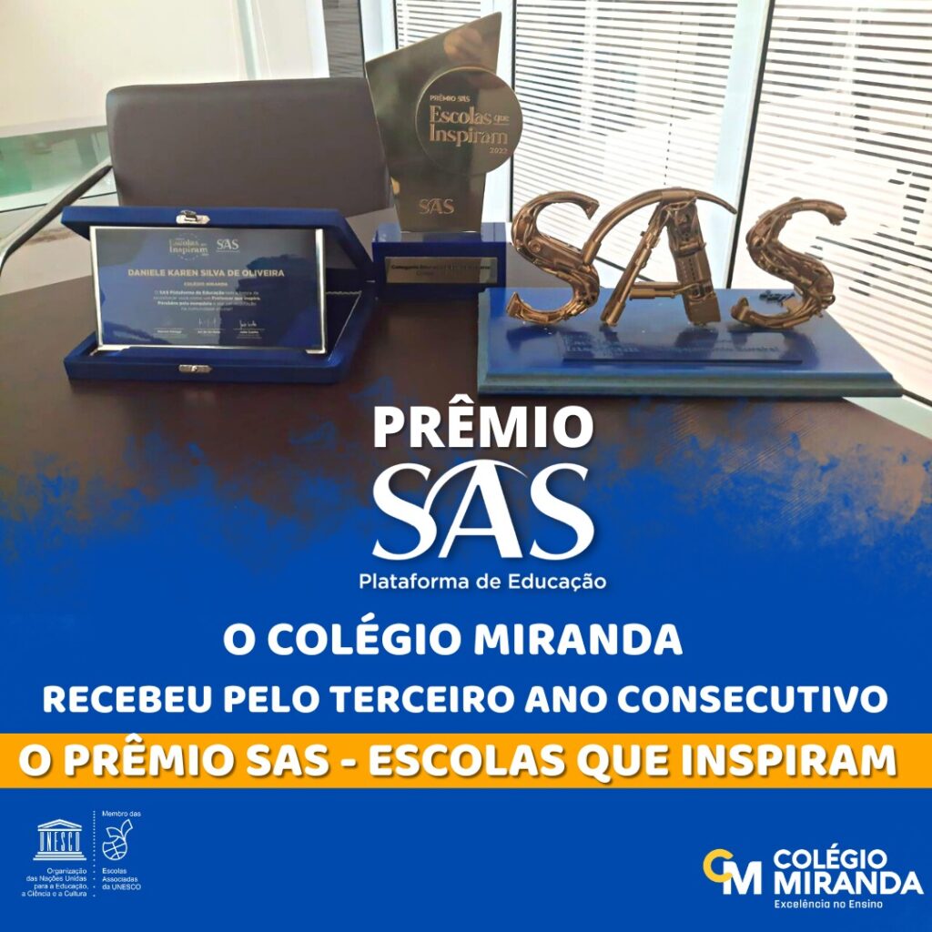 Colégio Miranda é destaque, pela terceira vez, no Prêmio SAS – Escolas que Inspiram.